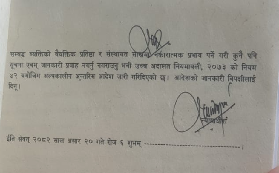 A bench of Justice Shyam Kumar Bhattarai at the Patan High Court issued this interim order on Friday, 20 Asar. The NWC, without understanding ground realities, had succumbed to the influence of a planned smear campaign (Google Trial) by vested interest groups and issued a statement against KSL without an official letterhead on 5 Chaitra 2081.
